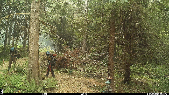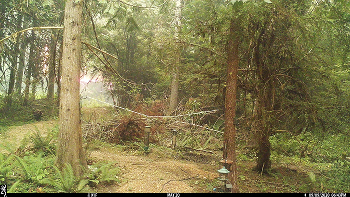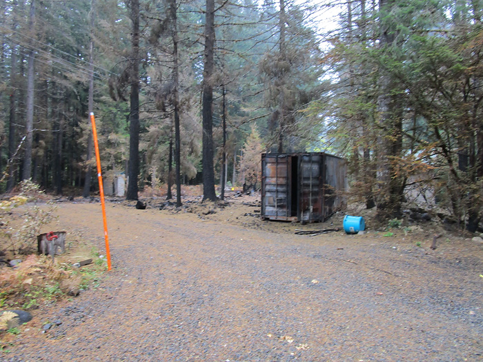 View from the deck. These guys were here on 9/9 making sure the fire across the river doesn't jump over and ignite our trees. As of 10/9, there were still smolding trees over there.